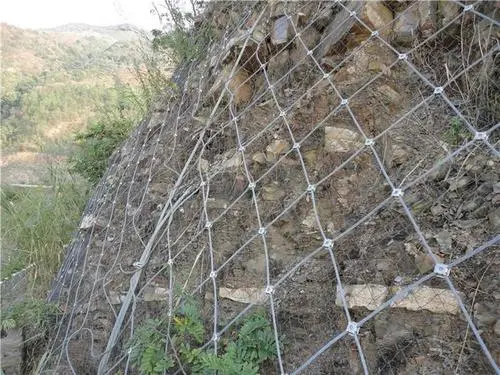 以鍍鋅高強(qiáng)度鋼絲繩為主要材料的的柔性防護(hù)網(wǎng)具有高韌性、高防護(hù)強(qiáng)度、易鋪展性等優(yōu)點(diǎn)。主動(dòng)防護(hù)系統(tǒng)通過(guò)多次邊坡防護(hù)工程的現(xiàn)場(chǎng)試驗(yàn)和對(duì)比,具有適應(yīng)任何坡面地形、安裝程序標(biāo)準(zhǔn)化、系統(tǒng)化等優(yōu)點(diǎn)。